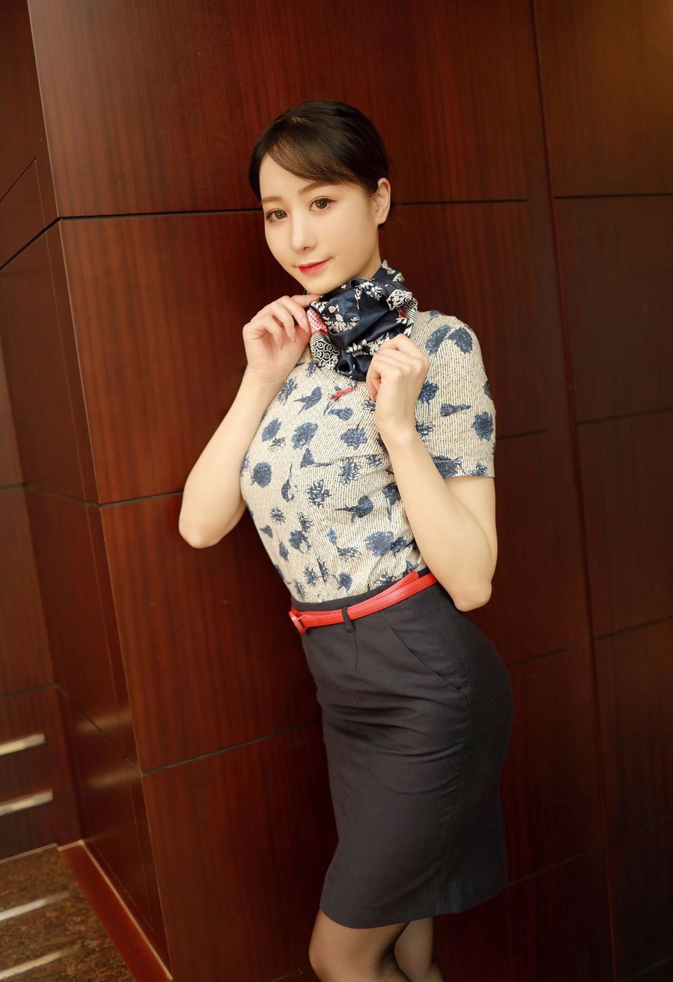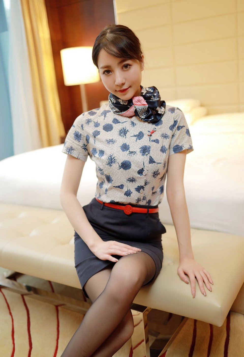 模范学院美女模特水水ER黑丝美腿空姐制服系列清甜写真[21P]